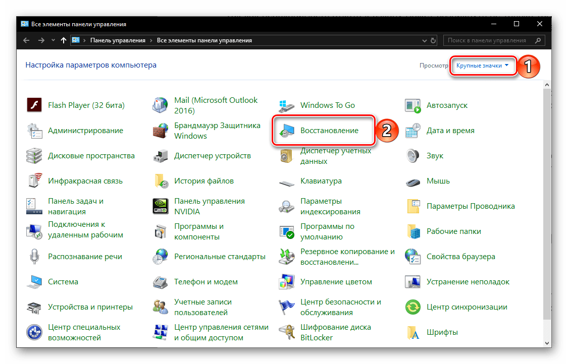 Способ 2: Диск или флешка с образом Windows 10 Если по каким-то причинам у вас не получается запустить ОС в «Безопасном режиме», можно откатить ее к точке восстановления с помощью внешнего накопителя с образом Виндовс 10