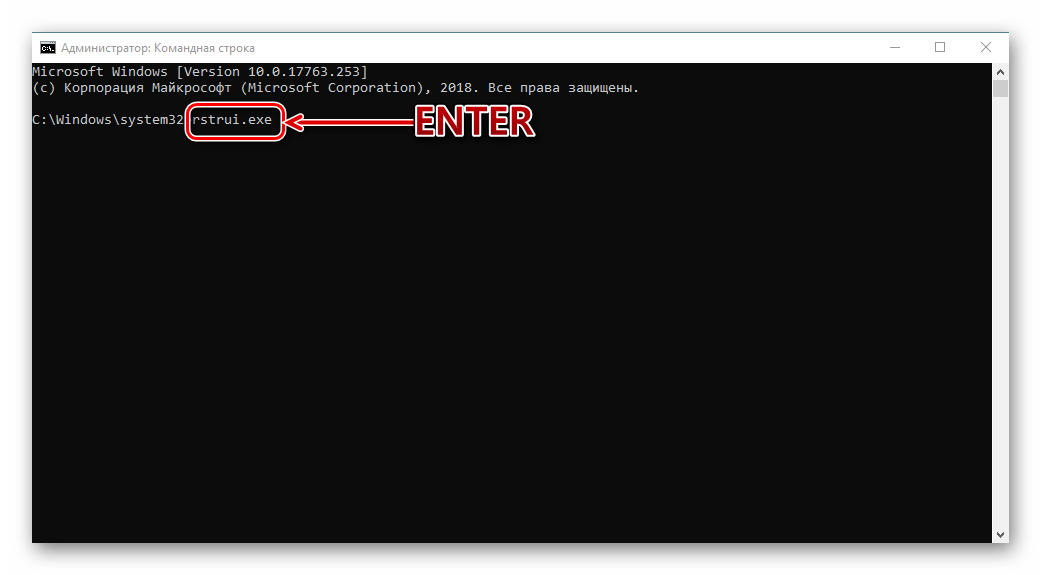 Далее для обоих вариантов: после открытия окна «Выбор действия», заново пройдите путь до запуска командной строки. В командной строке выполните следующую команду:
