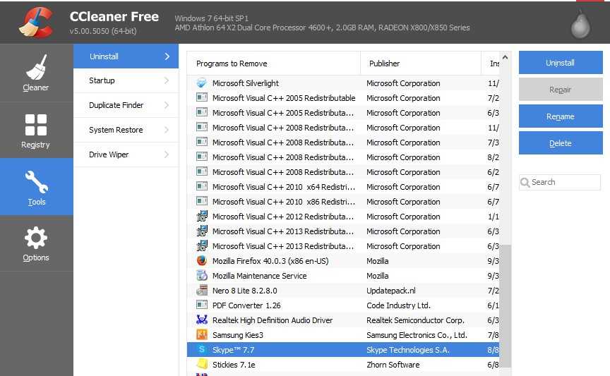 | Полное название программы | Ccleaner |