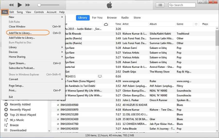 Шаг 4: откройте iTunes на вашем компьютере. Выберит Файл > Добавить файл в библиотеку, просмотрите и добавьте преобразованный MOV-файл в свою библиотеку iTunes.