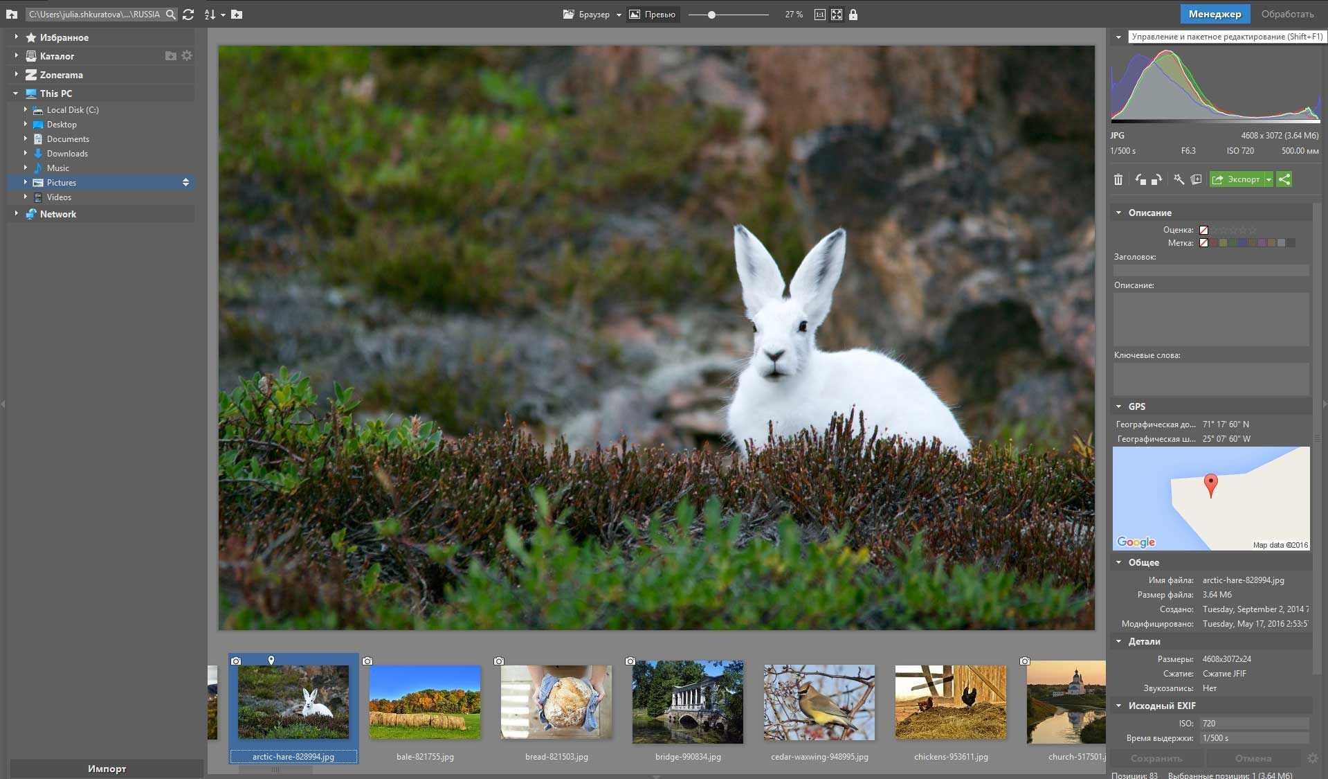 Мощный кросс‑платформенный инструмент для просмотра, редактирования и систематизации фототеки на компьютере. Отличается поддержкой огромного количества форматов — их больше 500.