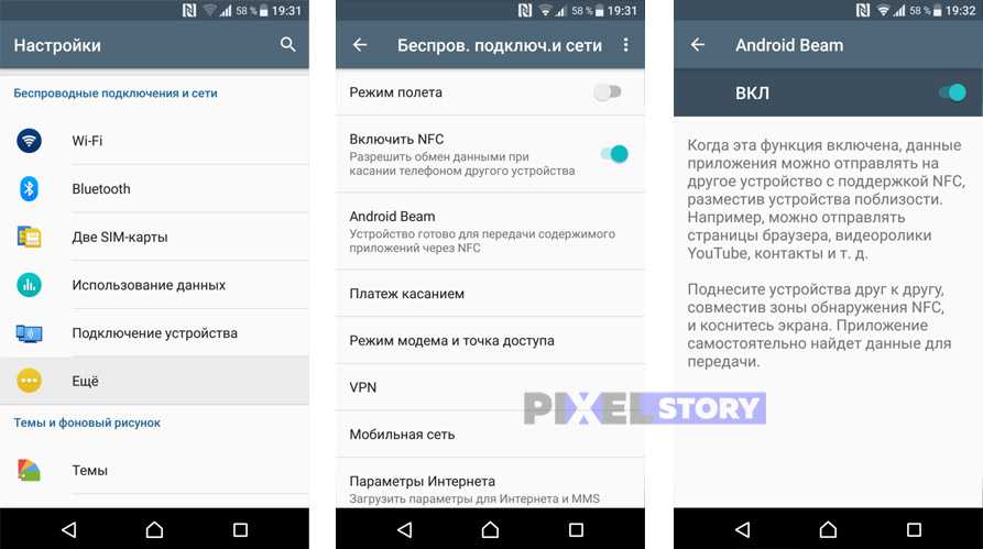 Проверьте наличие Android Beam и NFC на телефоне