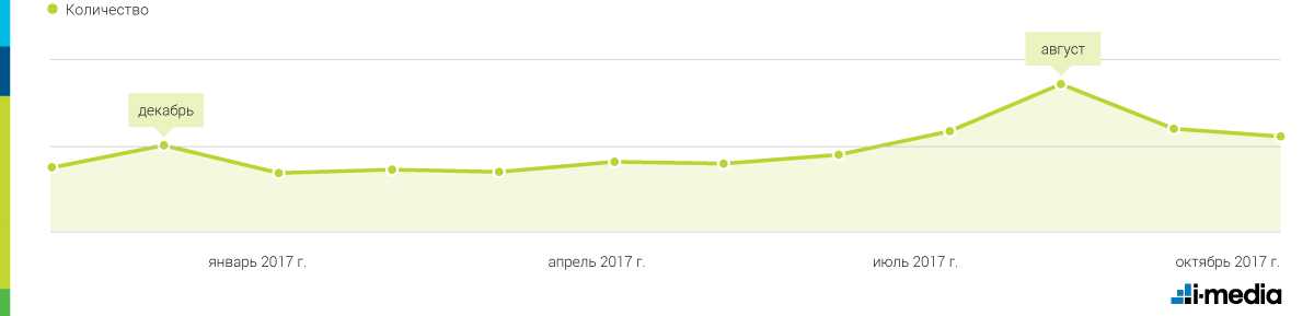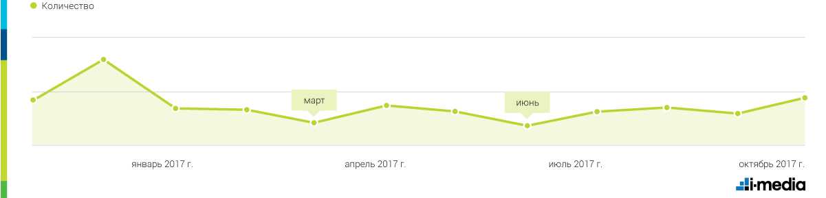 Рис. 5. История показов по фразе «Игровая приставка купить», Яндекс.Вордстат, ноябрь 2016–октябрь 2017