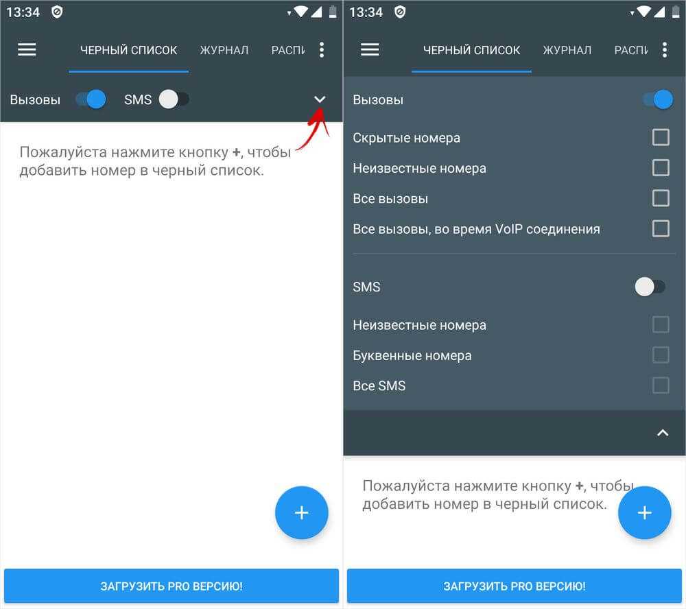 - «Черный список PRO» — улучшенная версия предыдущего приложения. Позволяет блокировать не только сообщения и звонки, но и номера, начинающиеся с определенных комбинаций цифр, например, все входящие от рекламных организаций, банков и проч. В данном случае отсутствует вход по паролю, а также уведомления о том, что абонент пытался позвонить или оставил голосовое сообщение;