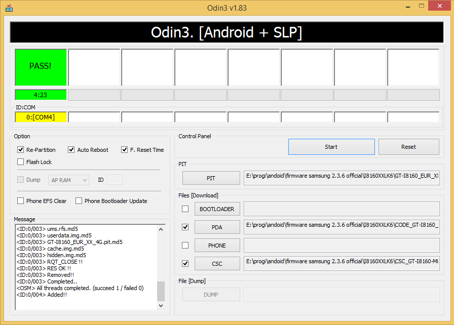 Если все прошло хорошо – у вас должна появиться кнопка PASS вверху в зеленом поле. Как видите, если следовать инструкции, то сбросить кастомную прошивку не очень сложно.