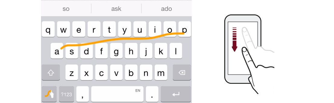 - ввод символов при помощи клавиатуры, не отрывая пальца или стилуса от экрана;