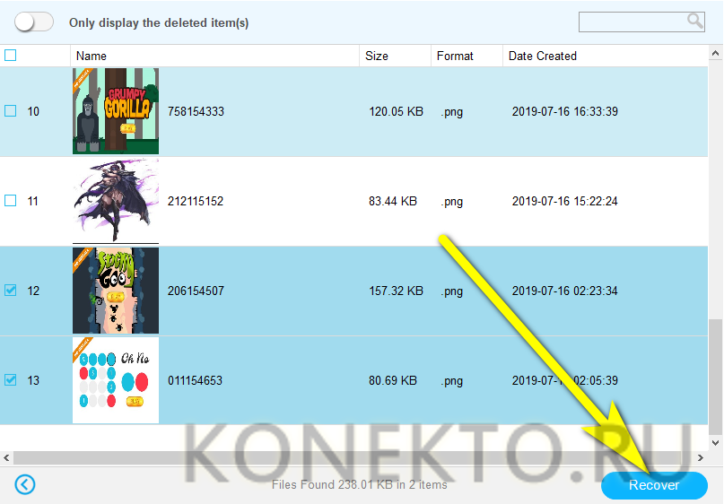 Почти всё. Осталось отметить галочками данные, которые требуется восстановить, воспользоваться кнопкой Recover.