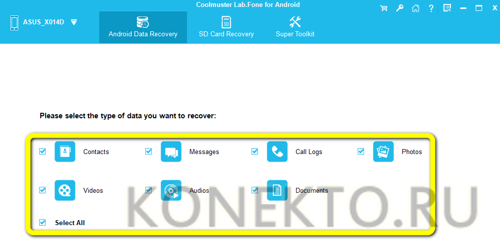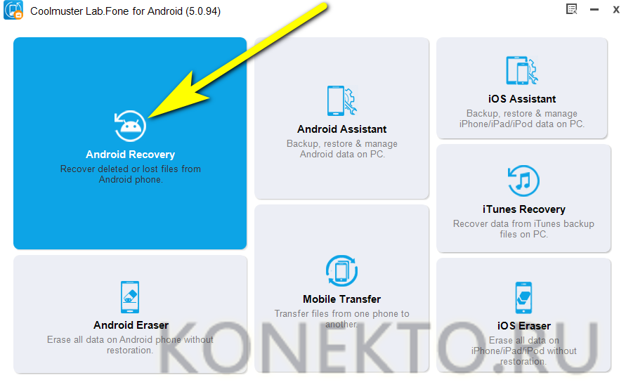 Скачать (ссылка — coolmuster.com) и после установки запустить Coolmuster Lab.Fone for Android, затем выбрать в главном окне раздел Android Recovery.