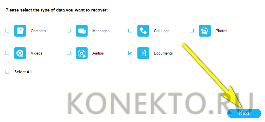 Или только нужные — например, текстовые документы. Нажав Next.