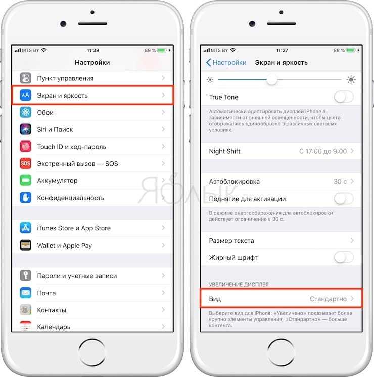 Пройдите по пути: Настройки → Экран и яркость → Вид.