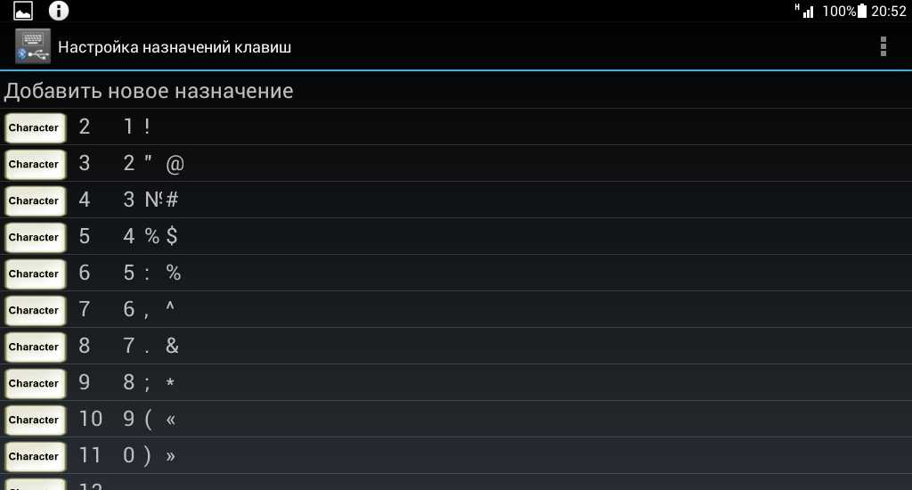 Потом будет продемонстрирована вкладка для редактирования раскладки. Там будет показан тип кнопок (Character, Keycode) с отображением их значения.