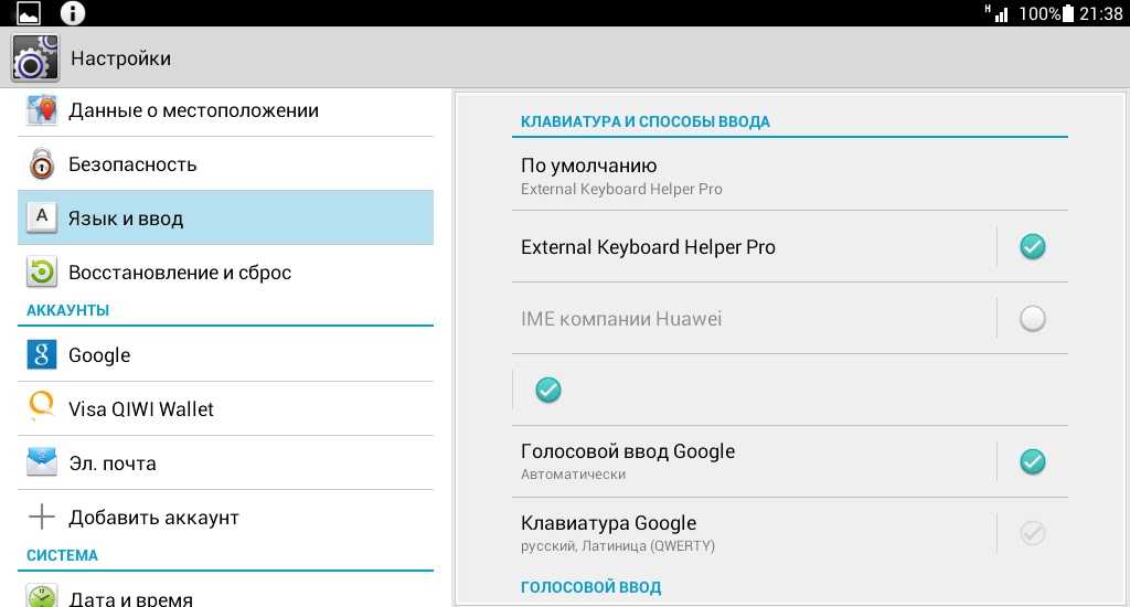 При проблемах в работе клавиатуры, можно вручную осуществить настройку ее раскладки. Для этого следует использовать утилиту External Keyboard Helper Pro.
