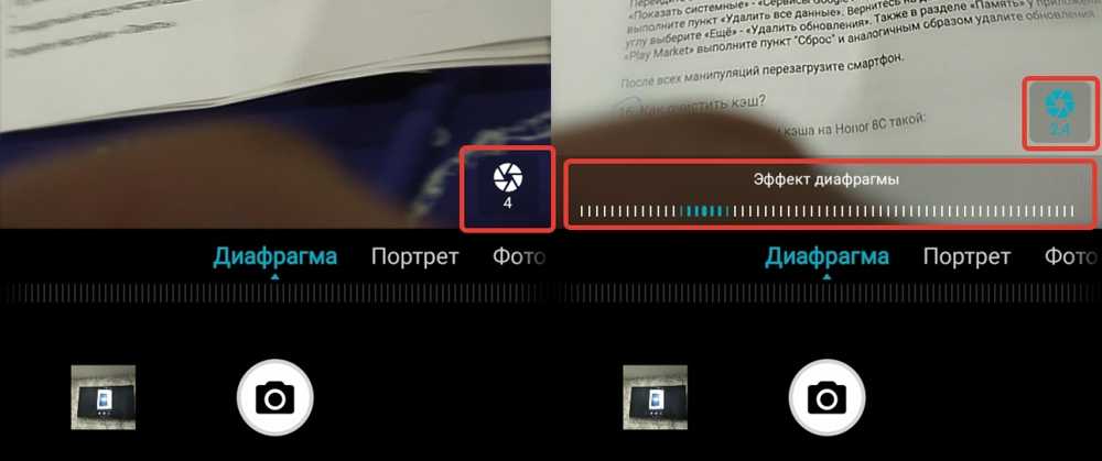 Чтобы изменить глубину резкости после съёмки нажмите на иконку с изображением лепестков диафрагмы и отрегулируйте положение ползунка на свое усмотрение.