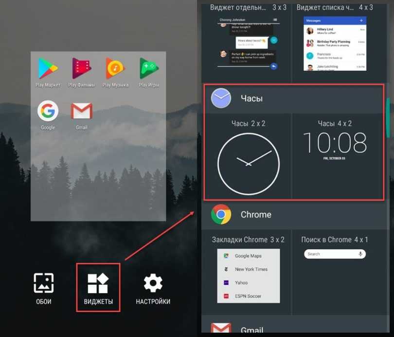 Шаг 2. Нажмите «Виджеты» и в появившемся экране найдите приложение «Часы».