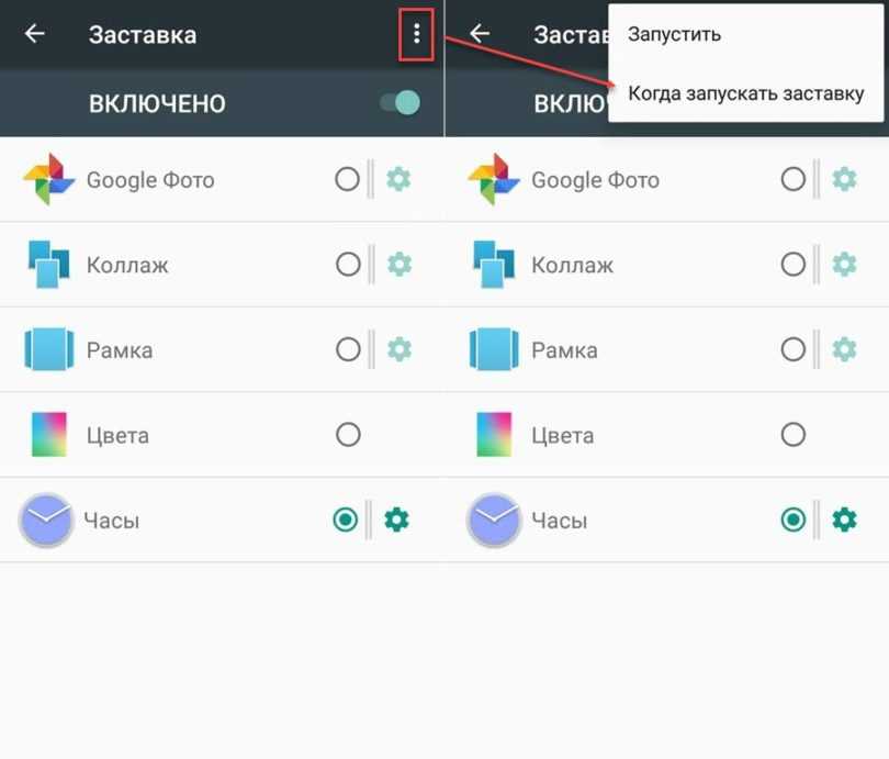 Шаг 3. Убедитесь, что в настройках заставки выбраны «Часы». Если вы используете стороннее приложение, то укажите нужное.