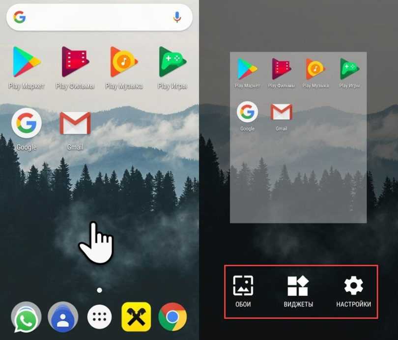Шаг 1. Сделайте долгое нажатие в любой свободной области на главном экране и дождитесь появления в нижней части экрана дополнительного меню.