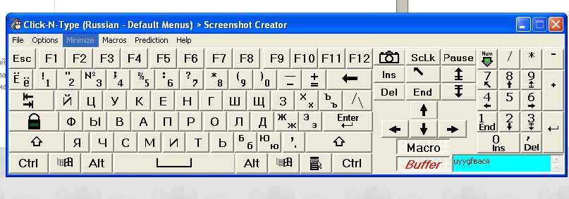 Click-N-Type – бесплатная экранная клавиатура. Обладает простым интерфейсом, но отличается большими возможностями, имеет множество настроек.