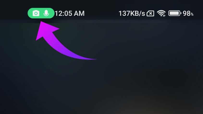 Уведомление об использовании камеры и микрофона в MIUI 13.