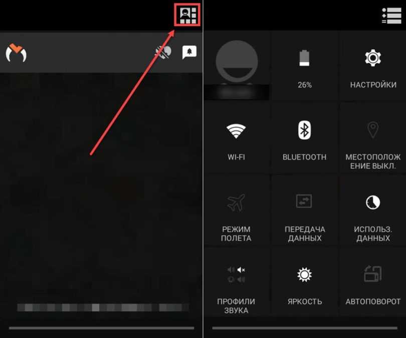 Шаг 2. Если вы используете устройство с операционной системой Android версии 4.4 и ниже, то после вызова панели уведомлений нажмите на значок в правом верхнем углу, чтобы получить доступ к дополнительным функциям.
