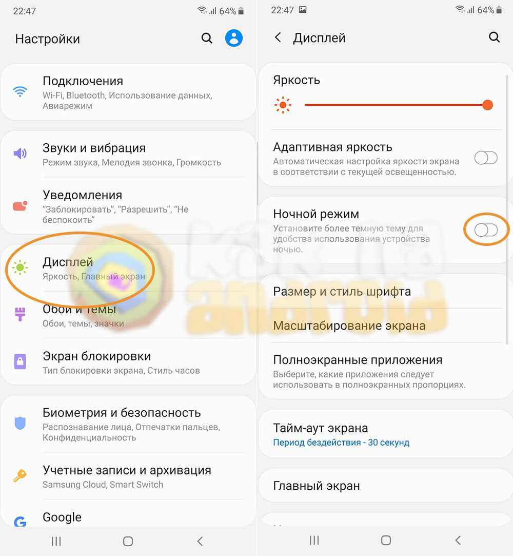 Открываем настройки своего мобильного устройства и в категории “Дисплей” активируем переключатель возле пункта “Ночной режим”.