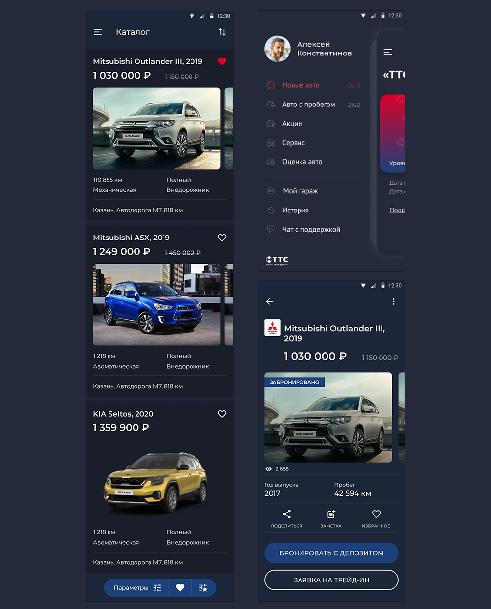 Темная тема для каталога автомобилей в приложении «ТрансТехСервис»