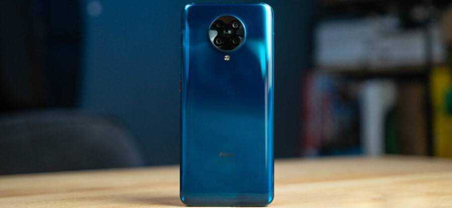 В бюджетном большом смартфоне серии Poco передняя фотокамера выдвигается, дополнена индикатором уведомлений и подсветкой, задние встроены в круглый блок. Аудиовыход находится в верхней боковой части смартфона. Кнопка питания заметная, красная.