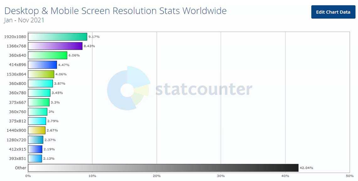 Какие разрешения экранов были популярнее всего в мире в 2021 году?