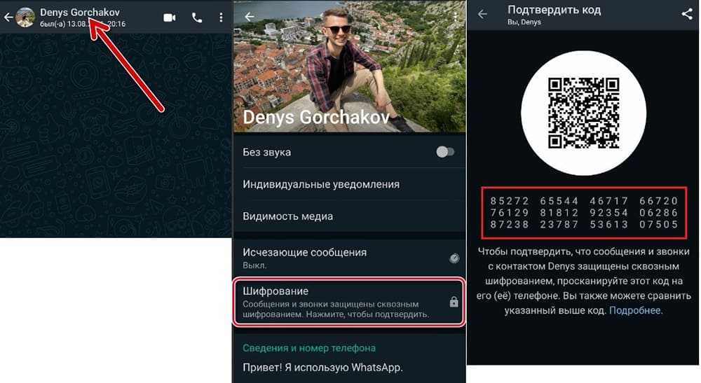 У каждого чата есть свой код безопасности, который используется для подтверждения шифрования ваших звонков и сообщений, которые вы отправляете в чат. Данный код можно найти в разделе Инфо о контакте — QR-код или 60-ти значный номер. Подобные коды уникальны для каждого чата. Участники чата могут сравнить коды для подтверждения, что сообщения, отправленные в чат, зашифрованы. Код безопасности — это видимая версия специального общего ключа между вами и вашим собеседником. Не волнуйтесь, это не полная версия самого ключа, он всегда держится в секрете.