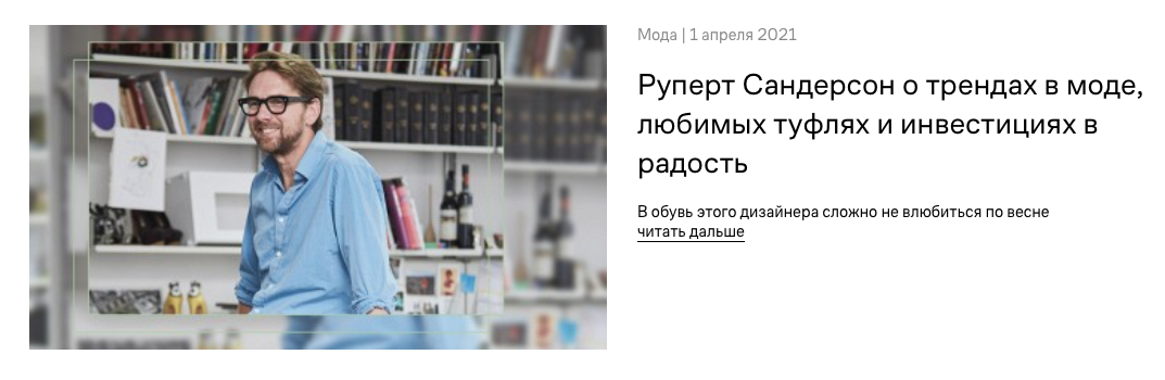 В заголовках-мнениях упоминают спикера и тему, на которую он говорит. Вот скриншот заголовка из издания о моде:
