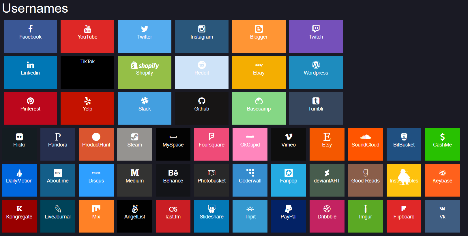 Вы можете свободно экспериментировать с разыскиваемым именем, чтобы получить удовлетворительныйрезультат. В то же время можно проверить интересующие имена на конкретных порталах, просто нажав на них.Клик будет перенаправлять на этот сайт, а точнее прямо на интересующий профиль, если он существует.