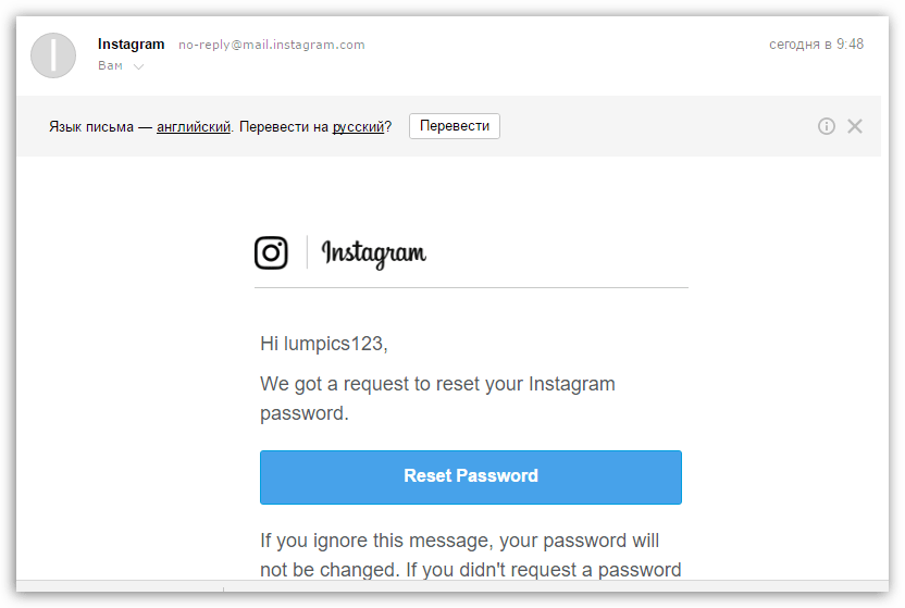 - В указанном письме будет содержаться ссылка, после перехода по которой вам будет предложено дважды указать новый пароль. При новой авторизации в Инстаграм не забудьте указывать уже новый пароль.