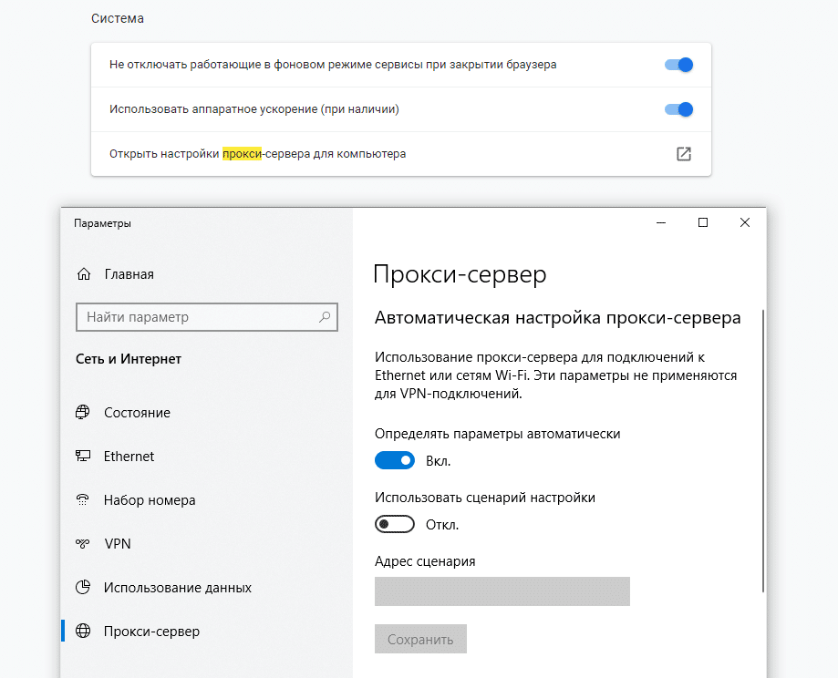 - При нажатии на нее откроются настройки прокси для компьютера;