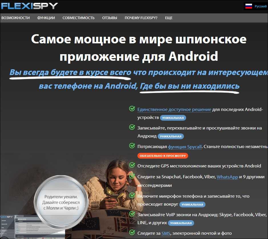 Веб-сайт Flexispy поддерживает 10+ языков, включая русский.