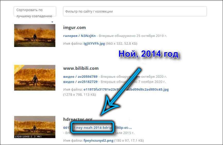 Обычно название фильма можно встретить в названии картинок, которые предоставляет поисковик.