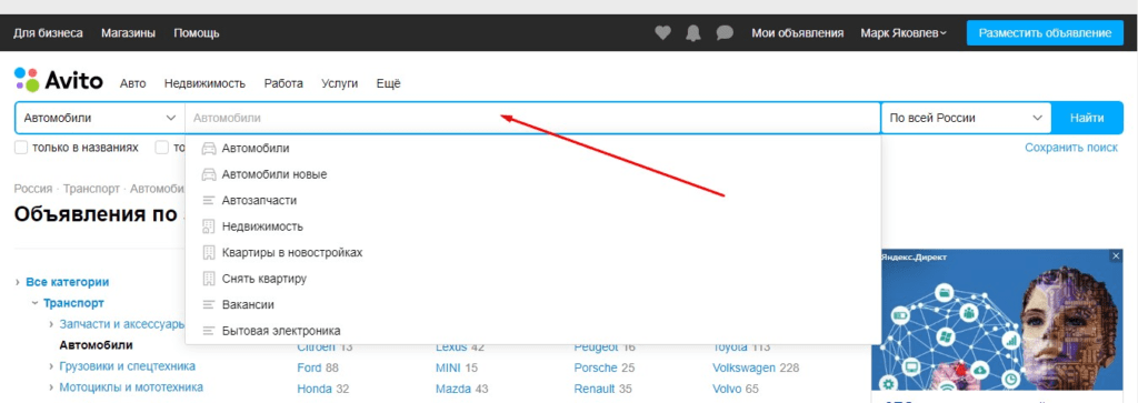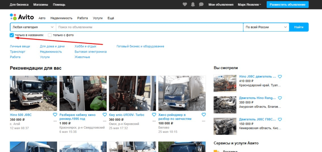 - После этого мы должны найти на сайте раздел, где собраны все, когда-либо опубликованные объявления.