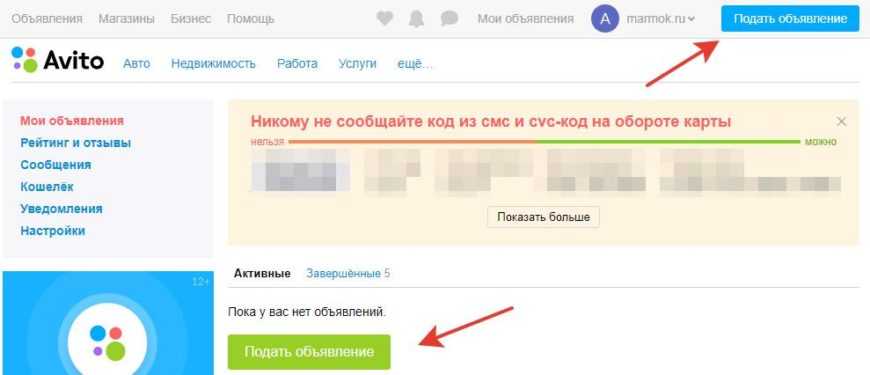 Для начала нажимаем кнопку «Подать объявление» в любом месте сайта.