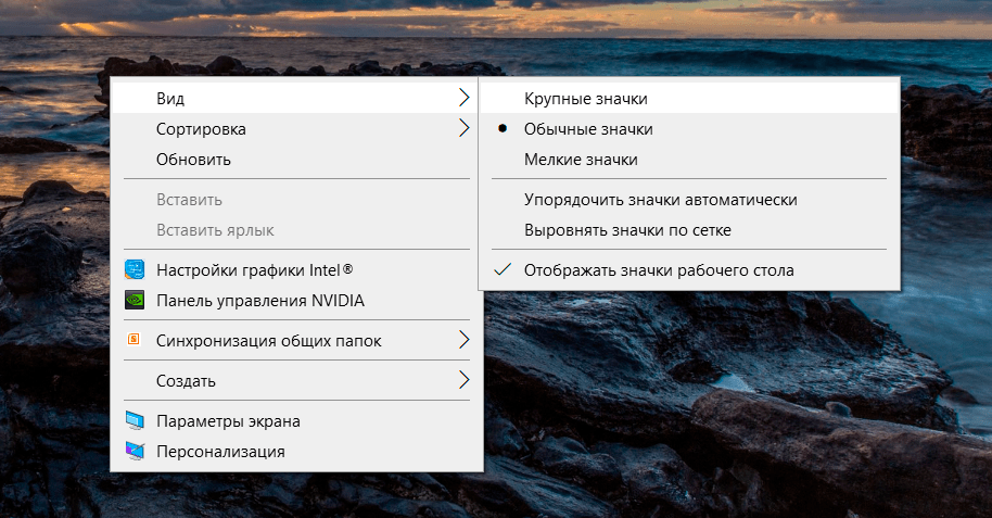 Увеличить экран на компьютере сменой размеров значков на рабочем столе
