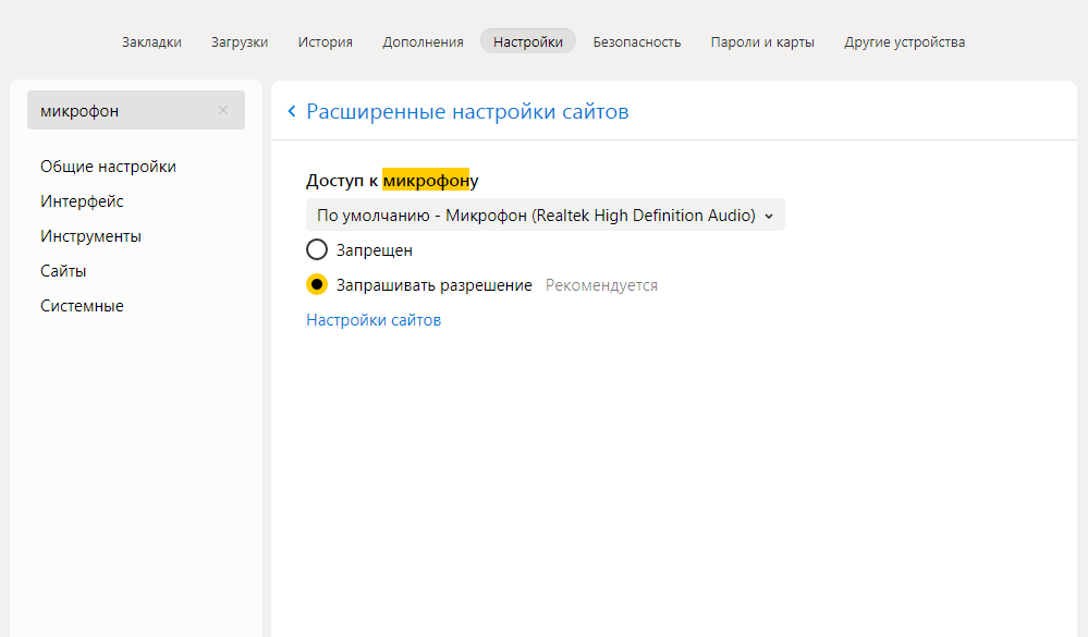 Как активировать микрофон в яндекс браузере