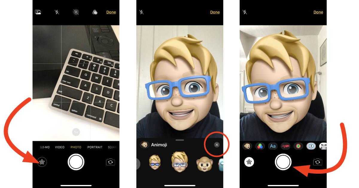 Использование эффектов камеры с memoji