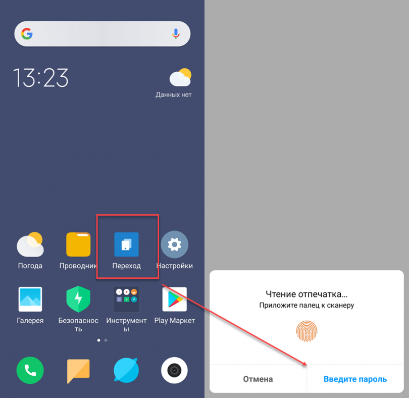 Ярлык «переход» по своей сути — кнопка переключения между двумя пользователями, зарегистрированными в операционной системе телефона. Естественно, если задан пароль, то выйти возможно только после того, как будет введена секретная фраза. Такой фразой могут быть: комбинация символов, четырехзначный пин-код или графический ключ.