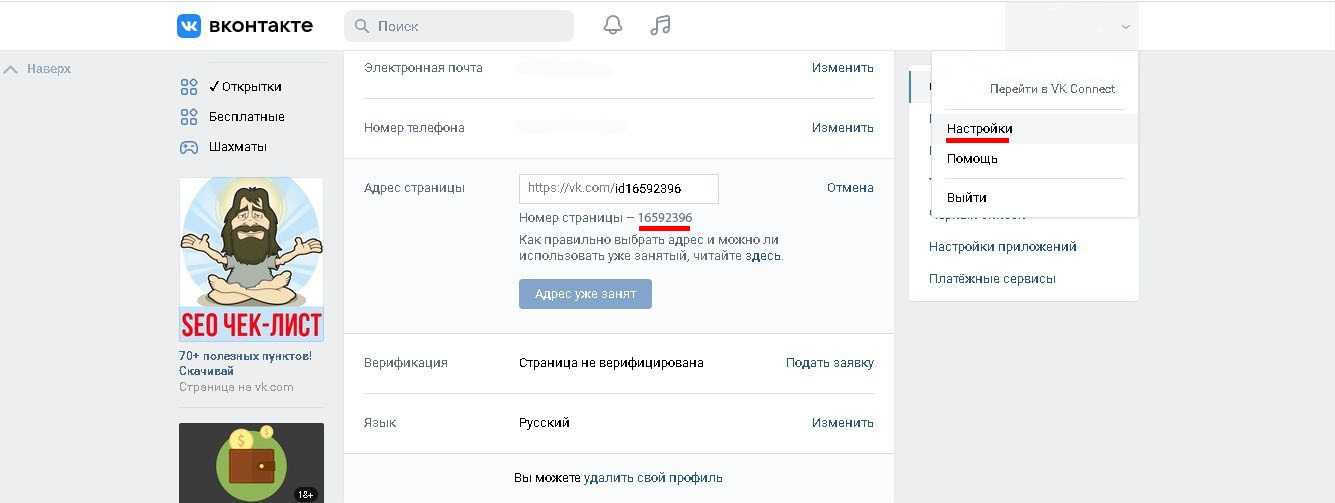 Проще всего узнать ID-номер своей страницы ВКонтакте. Для этого нужно сделать следующее: