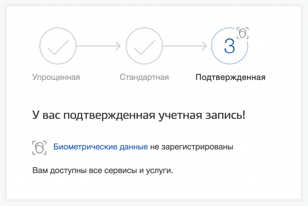 Для получения следующего статуса учетной записи необходимо подтвердить личность, нажав на кнопку «Подтвердить».