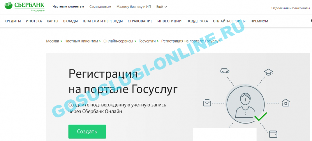 Сбербанк. В этом случае нужно также войти в свой личный кабинет через Сбербанк Онлайн. В верхнем меню выбрать «Прочее», а затем «Регистрация на Госуслугах».