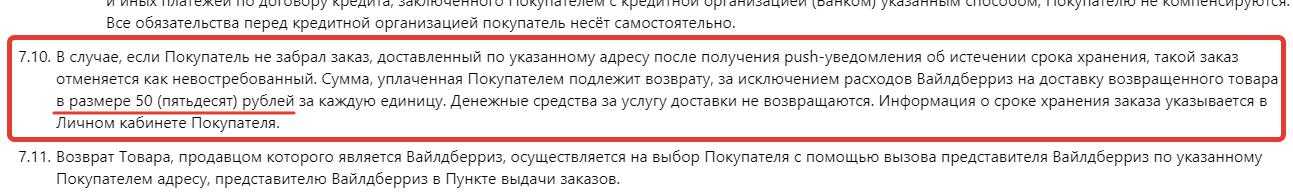 Магазин Вайлдберриз практикует платный возврат. По установленным регламентам, покупатели, отменяющие оплаченный заказ, получают всю его сумму, за вычетом 50 рублей.