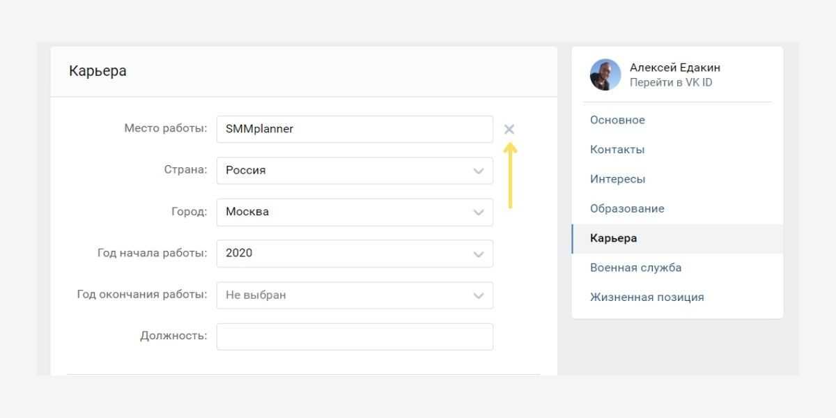В разделе карьера удалите все записи и нажмите «Сохранить». То же самое, если есть, в разделах «Образование» и «Военная служба».