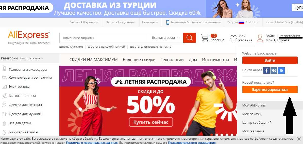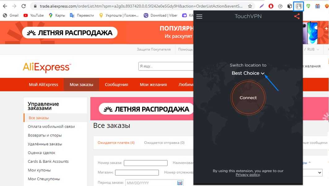Сервис VPN предназначен для обхода блокировки по IP. Схема входа на Алиэкспресс через виртуальную частную сеть: