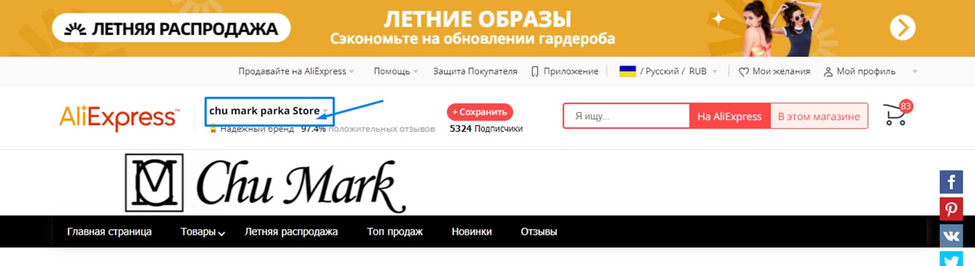 Через страницу магазина продавца
