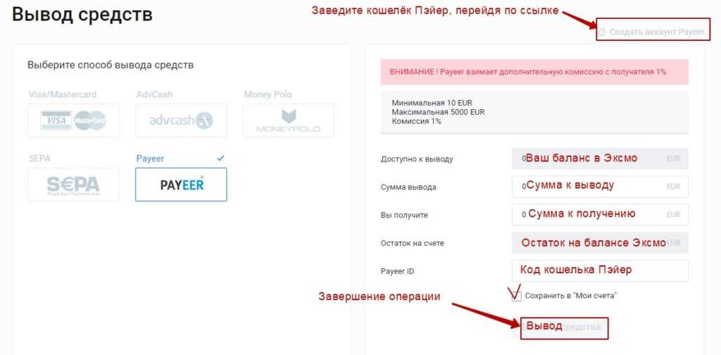 Обменники имеют большой выбор платёжных систем и банков, с которых можно оплатить Эксмо код. Самые популярные направления обмена — это обмен киви на Эксмо код или оплата кода через Сбербанк. Но кроме этого многие из них поддерживают Яндекс Деньги, карты Visa и MasterCard, Payeer, Perfect Money, некоторые российские банки.