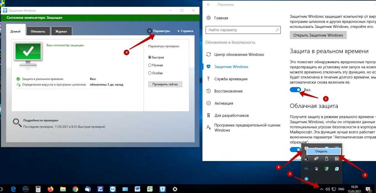 Отключение проверки в реальном времени в “Защитнике” Виндовс 10