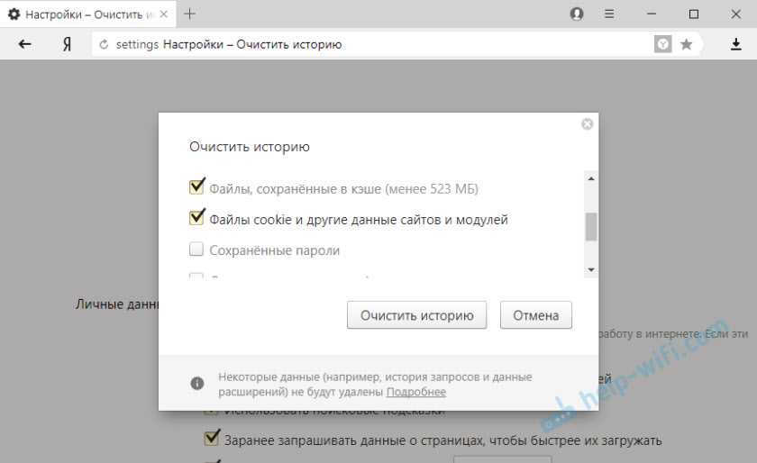 Для очистки кэша и куки перейдите в «Меню» – «Настройки» и нажмите на кнопку «Очистить историю загрузки». Выберите «Файлы cookie» и «Файлы сохраненные в кэше». За все время.